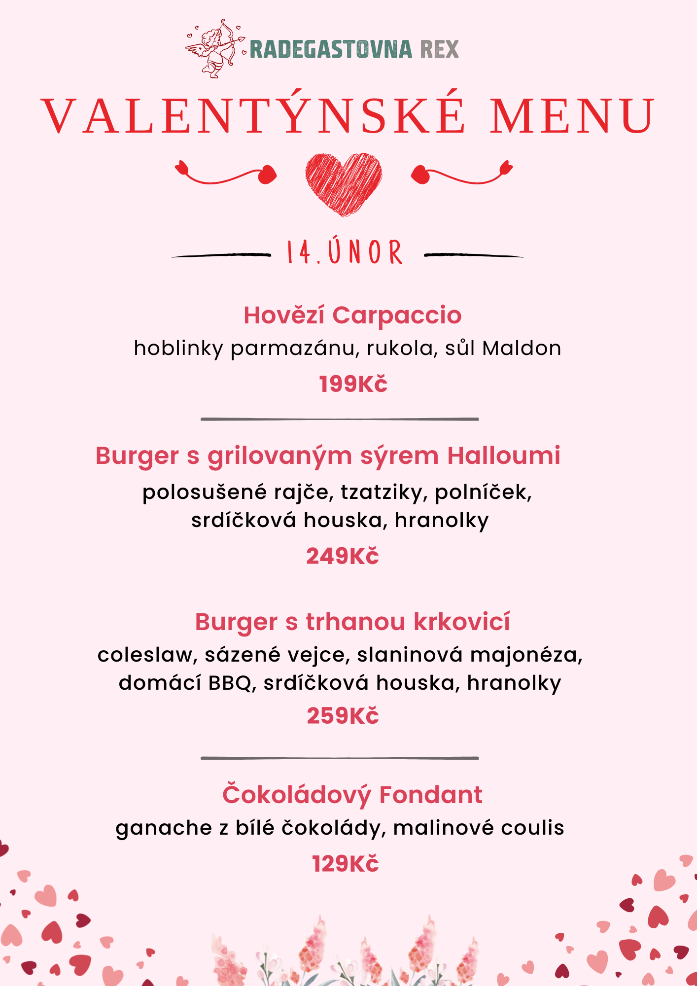 14. února vás zveme na speciální valentýnské menu plné chutí, které potěší každého gurmána – i zamilované páry. 🍽️✨